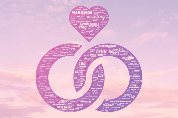 As WordCloud.app supports shapes – take a look at some heart-shaped word clouds or wedding ring-shaped designs – you can choose from various wedding shapes or upload your own.